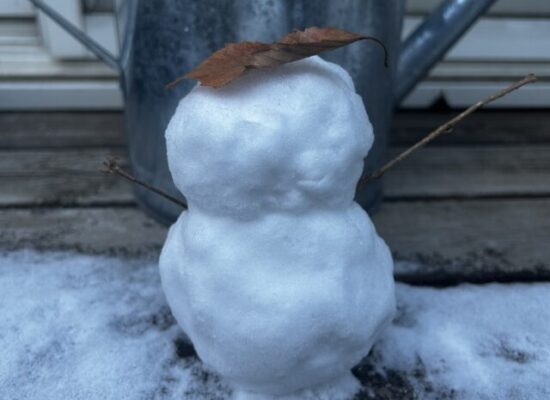 昨日の夜に残ってた雪で娘が作った雪だるま⛄ 朝も溶けることなくしっ…